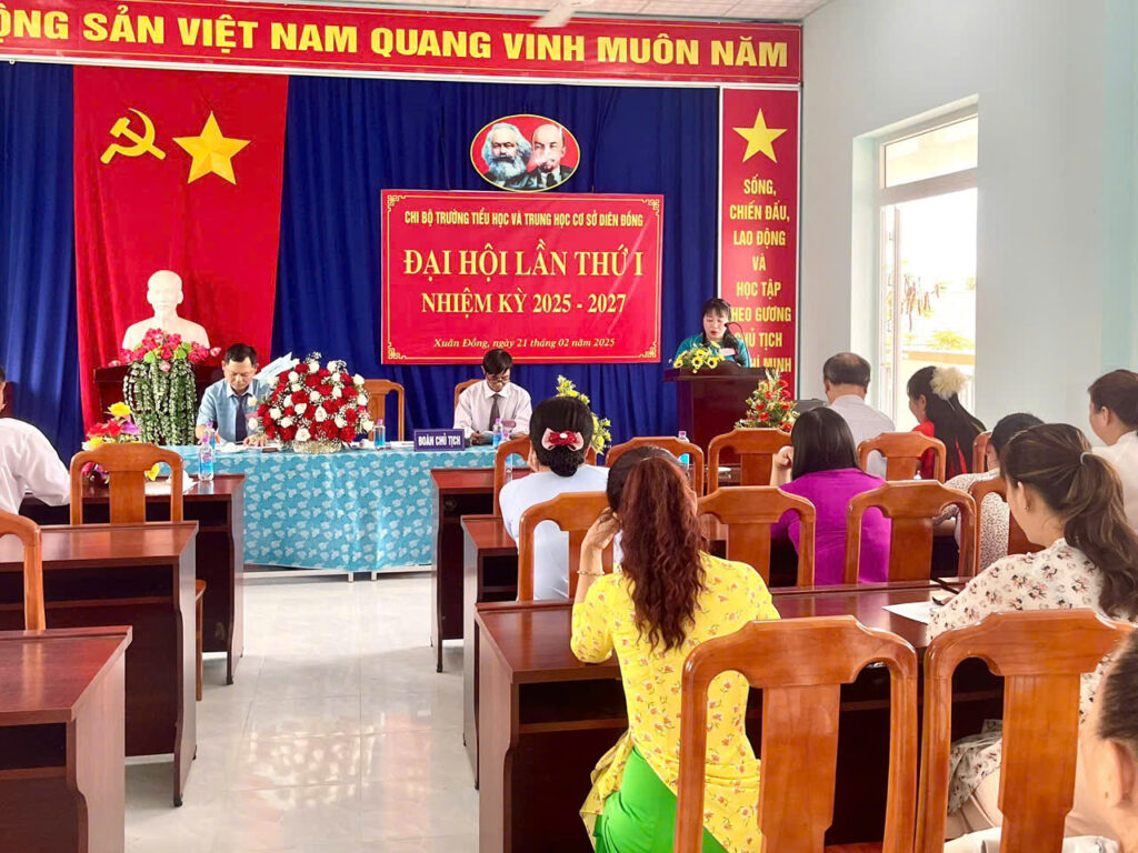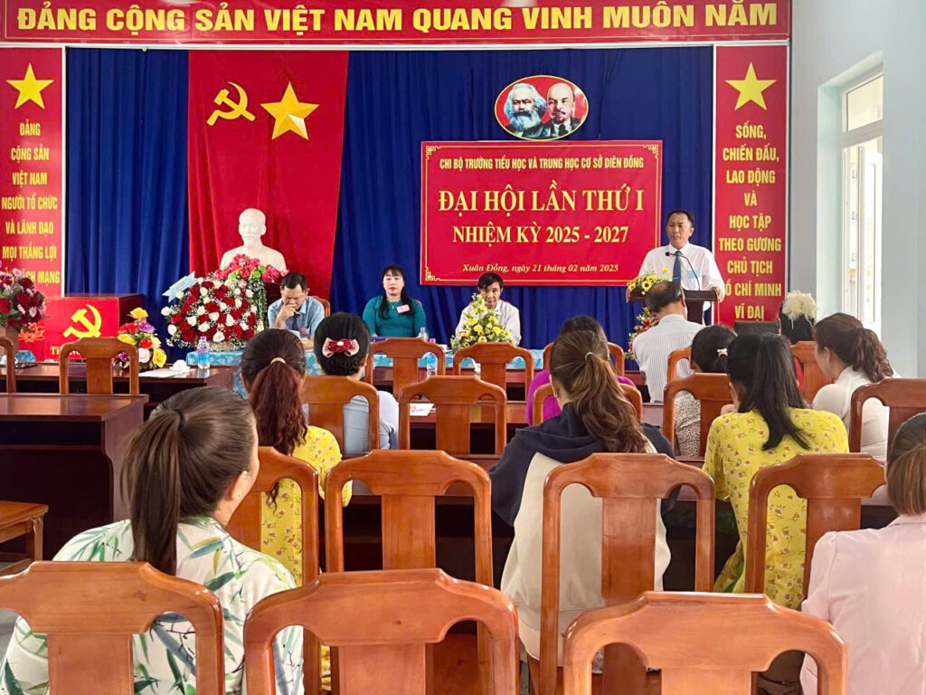 Thực hiện kế hoạch số 01-KH/ĐU ngày 05/11/2024 của đảng ủy xã Xuân Đồng về việc triển khai Đại hội Đảng bộ xã và đại hội chi bộ trực thuộc, nhiệm kỳ 2025-2027. Được sự thống nhất của đảng ủy, Chi bộ Trường TH&THCS Diên Đồng tiến hành tổ chức đại hội chi bộ lần thứ VII nhiệm kỳ 2025-2027, đến dự đại hội có đồng chí Ngô Đăng Khoa-bí thư Đảng ủy xã Xuân Đồng cùng 22 đáng viên trong chi bộ.